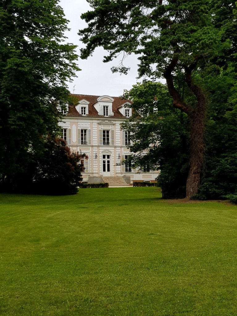 « Nous n’avions pas repris la vie commune, sans pour autant nous séparer. C’était notre amour, la fatalité de notre amour. On devait s’habituer à vivre ainsi. Il me loua une grande maison à la campagne, le domaine de La Feuilleraie. (….) A La Feuilleraie, il venait régulièrement, même plus que je ne le voulais. Il arrivait et, quand il savait que j’avais des amis à déjeuner ou à dîner, il se rendait dans un petit bistrot du village, où il m’écrivait des lettres de dix, quinze pages. Des lettres d’amour comme je n’en ai jamais reçu de ma vie. Le parc était merveilleux. Les lilas poussaient de partout. Mais je me sentais encore seule. La floraison du printemps après les grandes pluies, les vergers chargés de fruits, le parfum des lilas et le silence du parc lamartinien réclamaient des amoureux sur ses bancs couverts de mousse. (….) Vous êtes heureuse, ici, Consuelo. C’est merveilleux la lumière de cette pièce. Regardez par la fenêtre cette pelouse, ces couleurs (…). Nous traversâmes (….) les allées de lilas en fleur tout en nous jetant de petites branches sur les cheveux, en cueillant des cerises qui gonflaient nos joues car nous en mettions des poignées dans notre bouche.« Tonio finit par tomber malade puis il décide, suite à une énième dispute d’aller dormir à La Feuilleraie, avec des idées derrière la tête. « Tonio demanda à mon jardinier d’aller lui chercher un banc jaune dans le jardin pour le mettre en face de la fenêtre. Je ris car la chambre avait des fauteuils confortables. Mais il voulait absolument un banc de jardin. Jules et sa femme le transportèrent donc. Tonio leur annonça alors que cette chambre serait désormais la sienne et qu’il tenait à ce que personne ne s’assoie sur ce banc. Ce serait « le banc Antoine de Saint-Exupéry » ». Est-ce que la mairie aura un jour l’idée (lumineuse !) de remettre un banc avec son nom dans le parc ? Et puis il y a l’histoire des roses : »C’était l’histoire de la cueillette des roses sur le chemin de Paris à La Feuilleraie – Madame Gomez passe sur cette route tous les soirs après son travail, lui dit un convive. Elle a forcéement fait la connaissance des cultivateurs de roses. Un soir de gelée, Madame Gomez a vu que ses amis les cultivateurs pleuraient, tout en émoi. Car la gelée était en train de tuer les roses. La même nuit, elle se fit apporter des dizaines de grands draps de lin brodés de couronnes. (…) En pleine nuit, elle a ranimé l’espoir des planteurs de roses [ qui sont ensuite tous venus à La Feuilleraie pour l’aider au verger et au potager].