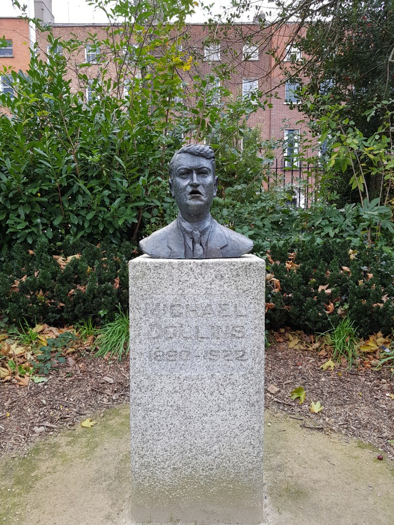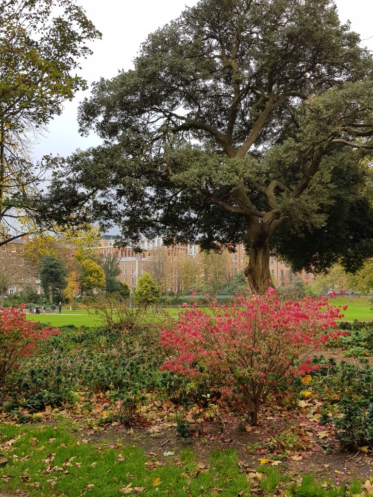 J’ai passé quelques jours dans la capitale irlandaise, comme indiqué précédemment. En France, le 11-Novembre est plutôt un jour « plombé » : brouillard et armistice de la Grande Guerre. En Irlande, c’est un jour comme un autre. Et cette année, comme cet été, j’ai été surprise par l’incroyable douceur pour un mois de novembre. Un temps sec, nuageux, juste quelques gouttes le samedi après-midi mais d’incroyables jeux de lumières dont l’Irlande seule a le secret. Un vent un peu capricieux (il est inutile de se coiffer à Dublin, Zephir se charge en permanence de la chose). Bref, ce fut très propice à la déambulation : quasiment 30 kms à pied assortis d’un petit tour en DART vers la côte sud pour aller à Bray et Killiney. Au retour se retrouver entourée de gens en vert, vieux ou jeunes, hommes comme femmes. Seul ou en famille. Jour de match de rugby : Îles Fidji-Irlande ! Le conducteur du train pas loin de devenir fou. « Hey folks, there is another train in four minutes for the match ! » 😁